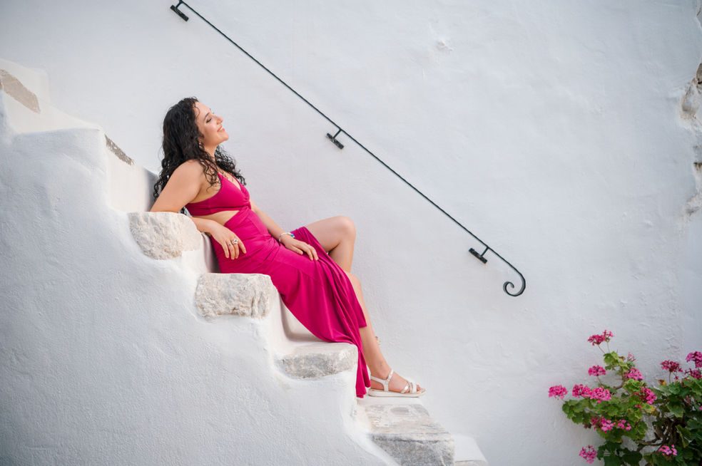 This summer, a young couple from Italy and Portugal vacationed in Paros, where their love radiated freely. I captured their joyful moments, especially their playful dance poses, reflecting the deep connection they shared in this enchanting destination.