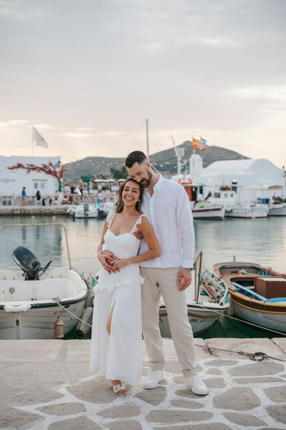 After their beautiful wedding in Texas, this lovely couple set off to Paros for a romantic honeymoon getaway! As a special gift, they enjoyed a delightful stroll through Paroikia, creating unforgettable memories together. It was a perfect way to celebrate their love in this stunning destination!