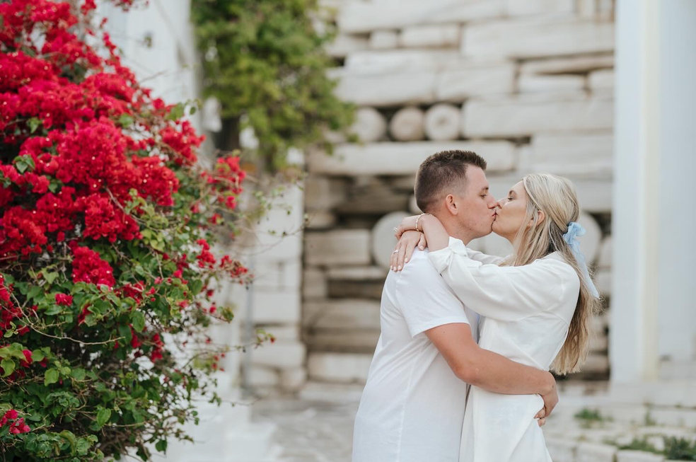 Julian and Keili, a beautiful married couple from the USA, enjoyed posing together in the charming alleys of Paroikia. Their time was magical, especially during the breathtaking sunsets, capturing the joy of their journey.